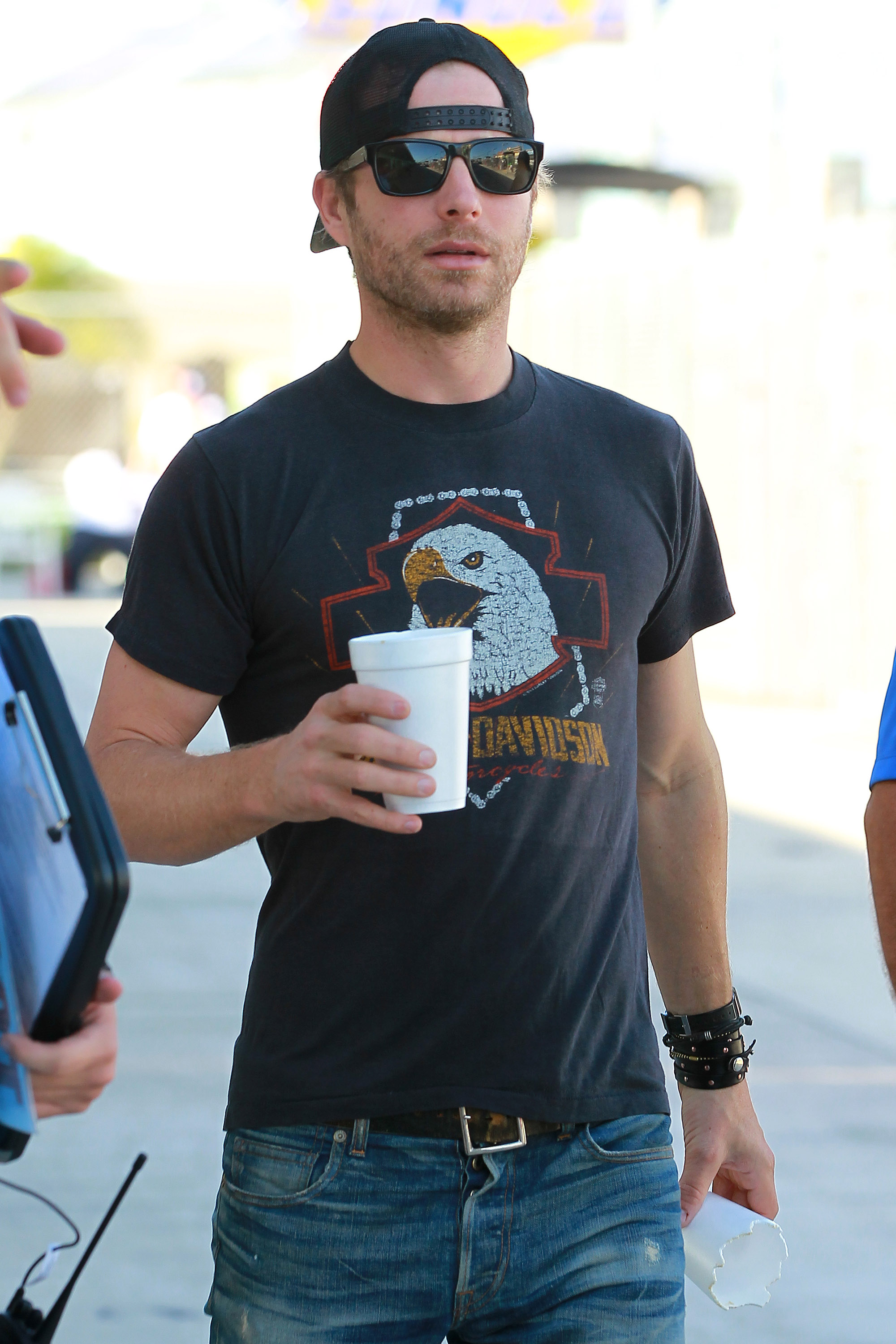 Dierks Bentley - Miami Dierks Bentley was spotted out and about in Miami yesterday prior to performing at the EcoBoost Ford 400 at Homestead Miami Speedway. As usual, Dierks kept his look cool in a backwards trucker cap, vintage Harley Davidson t-shirt and distressed jeans.