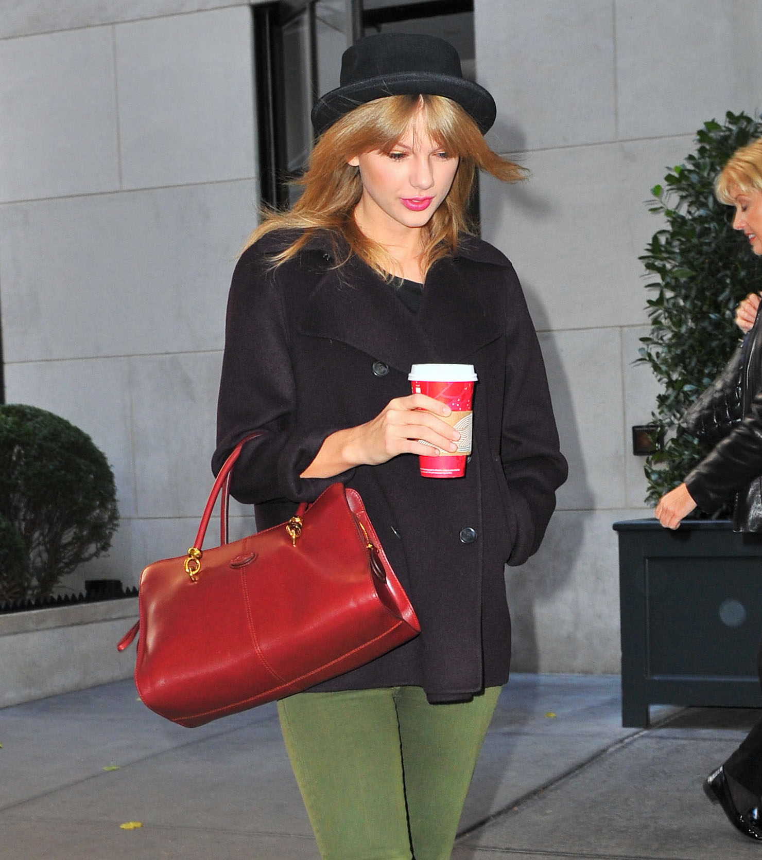 Taylor Swift was snapped out in New York City today. Dressed for the cool weather (and carrying her Starbucks) Taylor headed into rehearsals for tonight’s annual Victoria’s Secret fashion show.